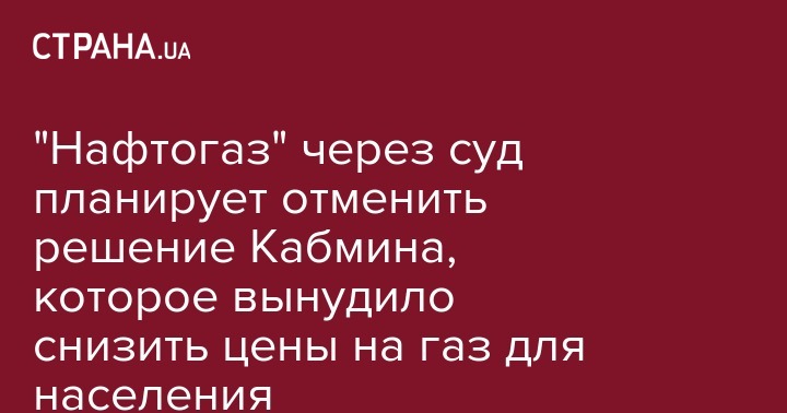 "Нафтогаз" через суд планирует отменить решение Кабмина, которое вынудило снизить цены на газ для населения