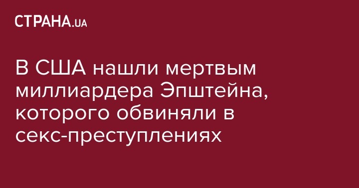 Американского миллиардера Джеффри Эпштейна, обвиняемого в эксплуатации и торговле несовершеннолетними, нашли мертвым в тюремной камере. Об этом сообщает ВВС