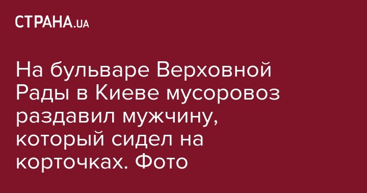 На бульваре Верховной Рады в Киеве мусоровоз раздавил мужчину, который сидел на корточках. Фото