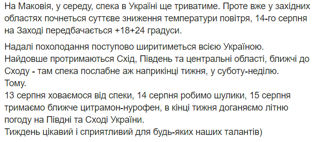 На Маковея, 14 августа, жара в Украине продолжится. Однако с запада придет существенное понижение температуры воздуха. В дальнейшем похолодает и в других регионах.