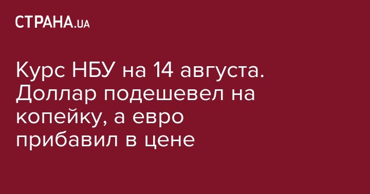 Так, 14 августа курс доллара составил 25,14 грн за единицу валюты. Евро же за день, напротив, немного прибавил в цене. Его стоимость составляет 28,21 грн за единицу евровалюты, что на 5 копеек больше, чем в предыдущий банковский день.