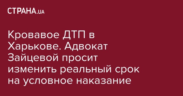 "Прошу смягчить приговор (суда первой инстанции - Ред.) в части назначения наказания", - сказала Плетнева в ходе заседания Харьковского апелляционного суда в среду. Она уточнила, что просит назначить наказание Зайцевой в виде 5 лет лишения свободы с лишением права управления транспортными средствами на 2 года, а также назначить ей испытательный срок на усмотрение суда.