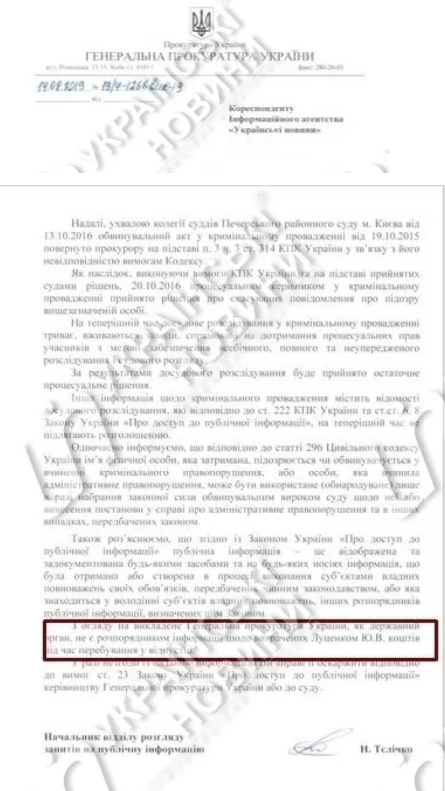 В своем ответе информагентству учреждение сослалось на закон Украины "О доступе к публичной информации". В законе понятие "публичная информация" определяется как такая, которая отображается на определенных носителях и была получена в процессе выполнения субъектами властных обязанностей и своих полномочий.