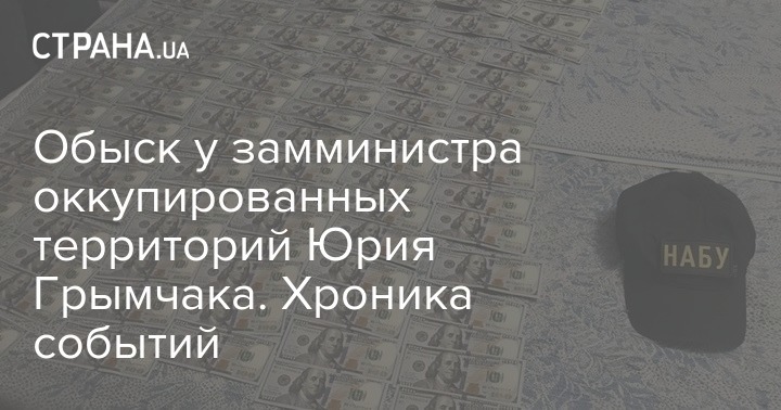 Замминистра по вопросам оккупированных территорий Юрий Грымчак задержан при получении взятки в 480 тысяч долларов, при этом это был первый взнос, всего Грымчак потребовал за свои услуги от одного из застройщиков 1,1 миллиона долларов.