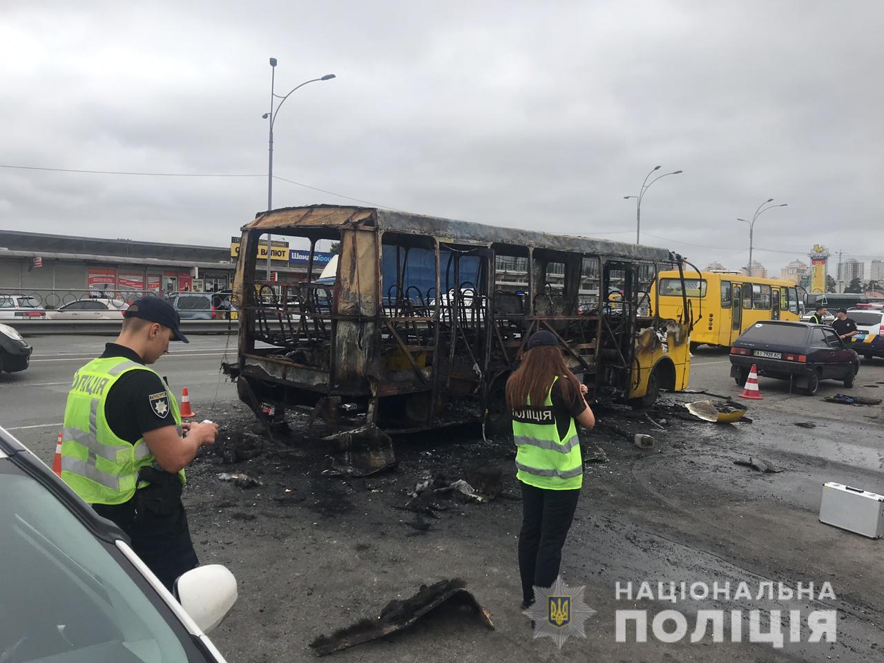 Как сообщалось, в результате происшествия полностью сгорел автобус №332 "Киев - Бровары". По словам водителя маршрутки, когда все пассажиры вышли на конечной остановке, произошёл резкий хлопок, взрыв и маршрутка стремительно вспыхнула. Он предполагает, что последний пассажир оставил пакет, который мог привести к взрыву. Однако очевидцев этого нет.