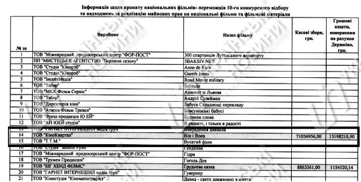При этом, такое вложение Госкино оказалось в числе "успешных", поскольку этот фильм вошел в 6 из 80 конкурсных кинолент, которые за два года смогли таки выйти в прокат и вернуть хотя бы часть из потраченных на поддержку 0,5 млрд грн бюджетных денег.