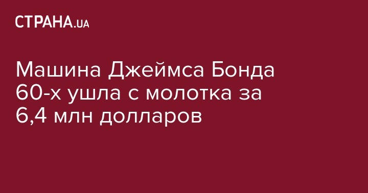 Аукционный дом Sotheby's продал на торгах в городе Монтерей (штат Калифорния, США) машину Джеймса Бонда Aston Martin DB5 из фильма "Голдфингер" (Goldfinger, 1964). Лот ушел с молотка 6,4 млн долларов. Имя нового владельца автомобиля не разглашается. Об этом аукционный дом написал в официальном Twitter-аккаунте.