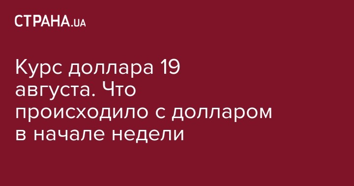 19 августа НБУ установил официальный курс доллара понизил курс доллара на 18 копеек - до 25,14 грн. В обменках доллар не менялся целый день: покупка в районе 25,24 грн, продажа - 25,28 грн. Межбанк закрылся с котировками 25,12 грн - покупка и 25,14 грн - продажа. В банках доллар в среднем покупали за 25,10 грн и продавали за 25,35 грн.