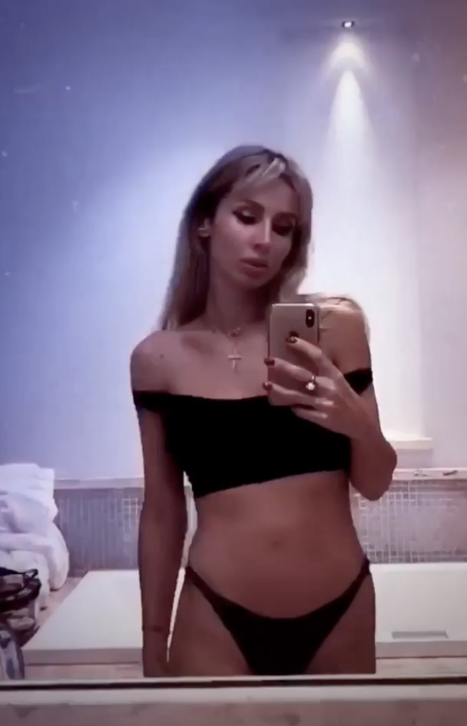 Судя по сантехнике на заднем фоне и стопке полотенец, видео снято в ванной комнате перед купанием. В нем Лобода демонстрирует точеную фигуру, обтянутую черным бельем.