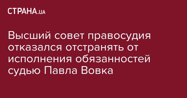 Рассмотрев ходатайство Генпрокуратуры о временном отстранении Вовка от отправления правосудия в связи с привлечением к уголовной ответственности, ВСП Генпрокуратуре отказал.