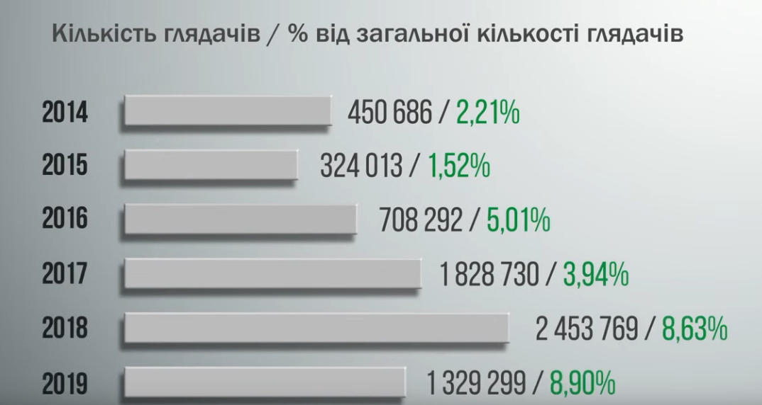 Несмотря на все старания "Госкино", количество зрителей, посмотревших отечественный продукт, ничтожно мало. Так, в 2014 году всего 2,21% от общего числа посетителей кинотеатров выбрали украинские фильмы. В 2019 году показатель увеличился до 8,9%, но эта цифра тоже весьма скромная.