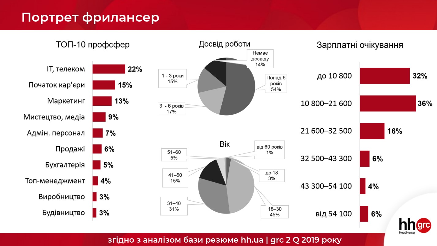 Во втором квартале 2019 года в Украине количество соискателей, которые хотели бы работать на фрилансе, увеличилось на 42% относительно того же периода 2018 года. Об этом со ссылкой на исследование базы резюме hh.ua и grc пишет "Экономическая правда".