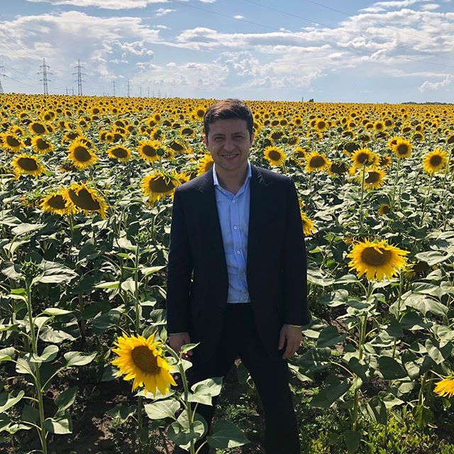 12 июля на официальной странице Владимира Зеленского в Facebook появилась его фотография в подсолнухах, где он позирует на фоне поля в деловом костюме. Снимок Зеленский выложил в день своего визита в Днепропетровскую область. "Слава Украине", - кратко подписал фото в цветах государственного флага Зеленский.