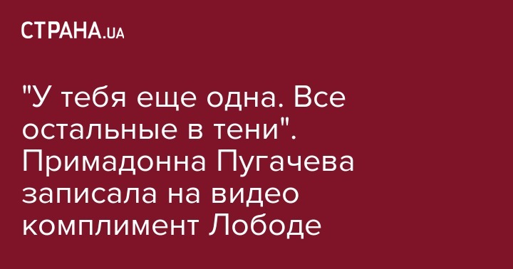 Украинская певица Светлана Лобода выпустила песню со словами "Живи спокойно, страна, я у тебя всего одна", а легенда эстрады Алла Пугачева прозрачно намекнула, что это не так. Ролик с короткой репликой старшей коллеги на эту тему появился в Instagram Лободы.