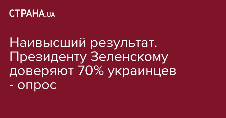"Новоизбранный президент Владимир Зеленский сейчас имеет доверие 70% граждан. Ни один президент в истории Украины такого доверия не имел, у Ющенко был за 50… Это наивысший результат", - сказала директор фонда Ирина Бекешкина.