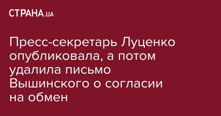 Пресс-секретарь Луценко опубликовала, а потом удалила письмо Вышинского о согласии на обмен