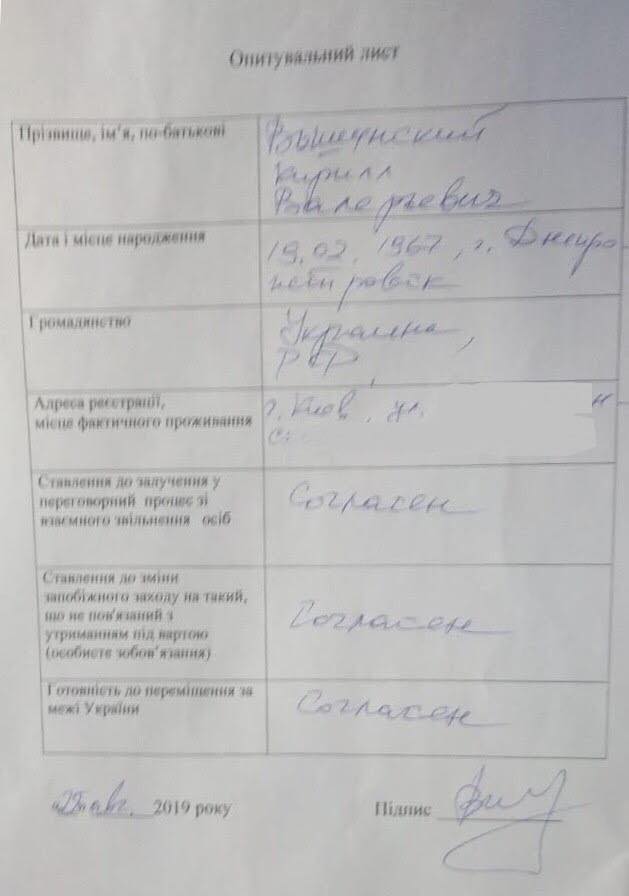 Главный редактор РИА Новости-Украина Кирилл Вышинский якобы подписал заявление о согласии на обмен. Об этом сообщила в Facebook пресс-секретарь генерального прокурора Лариса Сарган, но вскоре удалила этот пост.