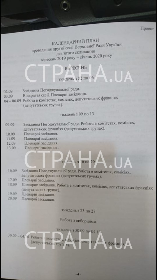 В распоряжении "Страны" оказался календарный план второй сессии Верховной Рады на сентябрь.