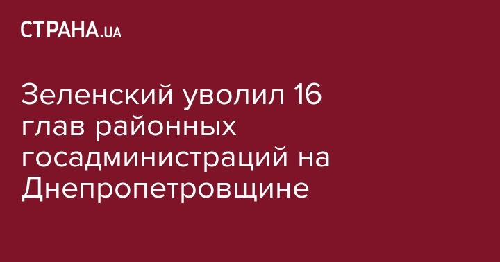 Президент Владимир Зеленский уволил 16 председателей районных государственных администраций в Днепропетровской области.