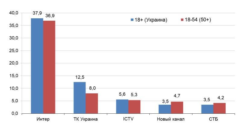 ТОП-5 каналов 31.08.2019 г. в слоте боя В. Ломаченко - Л. Кэмпбелл (24:35:40-25:40:56). Доля 18+, Украина/18-54, 50+, отсортировано по 18+, Украина