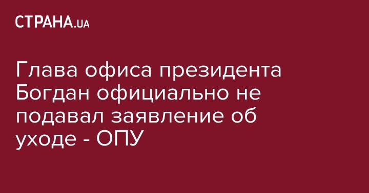 Глава офиса президента Богдан официально не подавал заявление об уходе - ОПУ