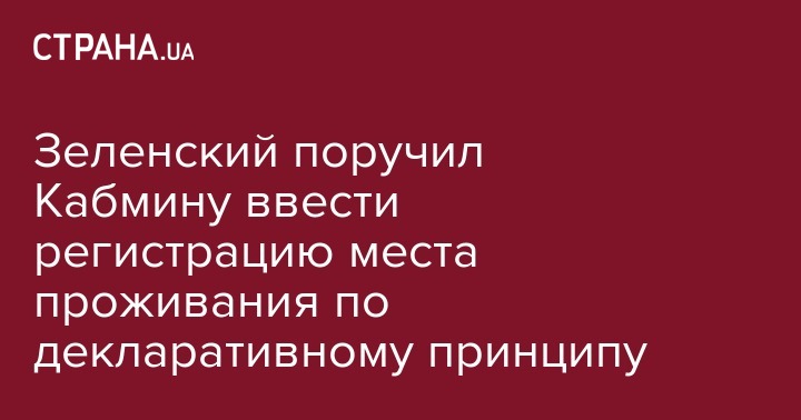 Президент Украины Владимир Зеленский поручил Кабмину рассмотреть введение регистрации места проживания по декларативному принципу. Заявления необходимо будет подавать в электронной форме.