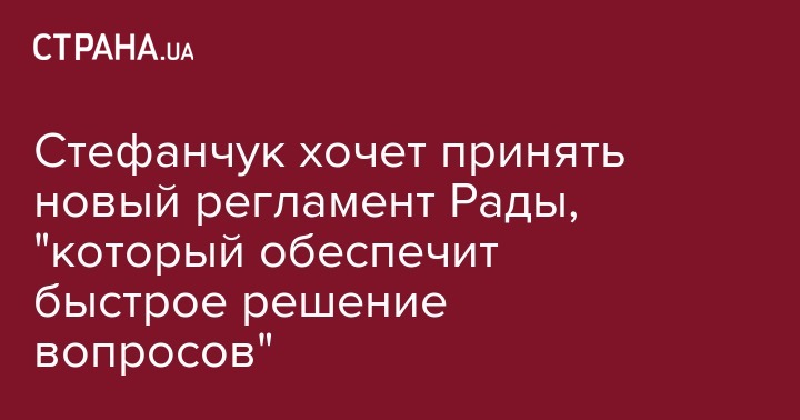 "Наша задача номер один - это разработать абсолютно новый регламент, который при сохранении прав большинства и оппозиции обеспечит быстрое рассмотрение вопросов", - сказал Стефанчук журналистам в четверг, 6 сентября в Киеве.