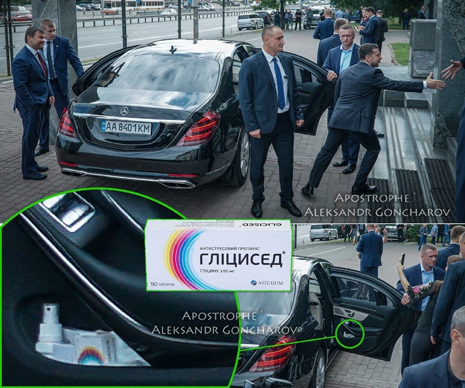 Не исключено, что президент Украины Владимир Зеленский снимает стресс с помощью лекарственного препарата "Глицисед". Упаковка этого средства, лежащая в дверце автомобиля главы государства со стороны его места в салоне, попала в кадр журналиста Александра Гончарова. Об этом автор фото написал на своей странице в соцсети.
