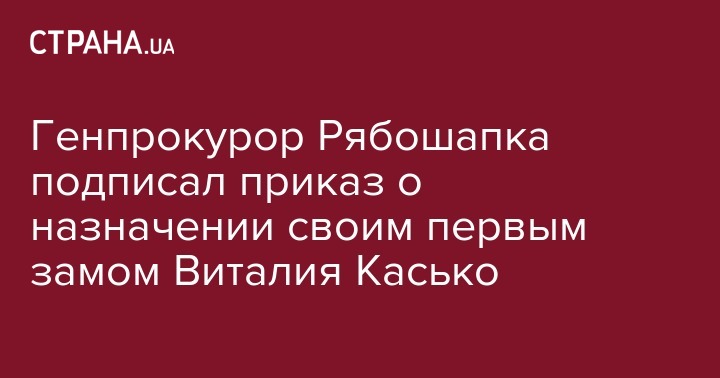 Генеральный прокурор Руслан Рябошапка 5 сентября 2019 подписал приказ о назначении Виталия Касько своим первым заместителем. Об этом сообщается на сайте ГПУ.