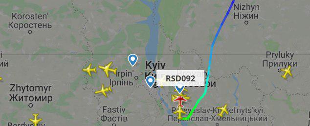 Российский самолет Ту-204-300 уже приземлился в аэропорту Борисполь. Об этом свидетельствуют данные портала Flightradar.