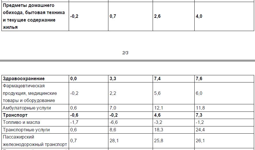 Одежда и обувь подешевели на 2,8%. Снижение цен (тарифов) на жилье, воду, электроэнергию, газ и другие виды топлива на 0,9% произошло за счет снижения цен на природный газ на 4,5%.
