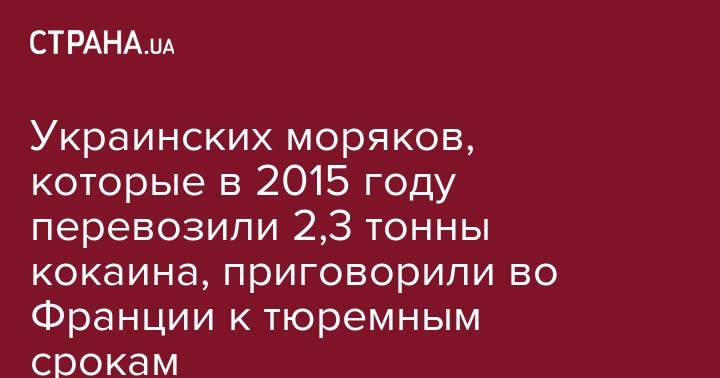 Во Франции украинских моряков, которых обвиняли в перевозке венесуэльского кокаина в 2015 году, приговорили к заключению на сроки от 5 до 8 лет. Решение вынес уголовный суд города Лилля, сроки получили девятеро украинских моряков. Об этом пишет Ouest France.