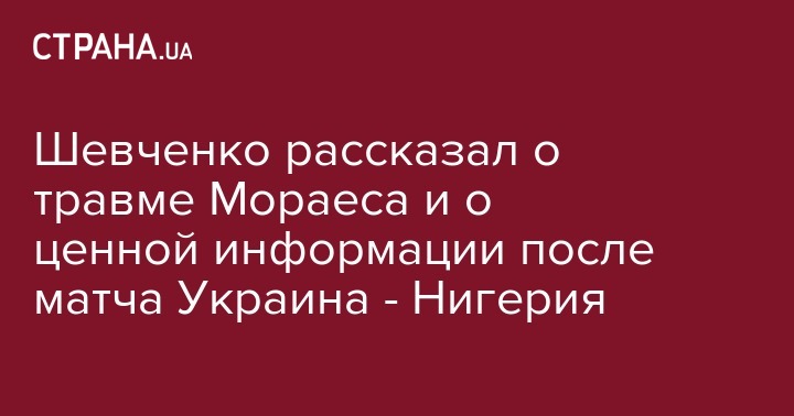 Шевченко рассказал о травме Мораеса и о ценной информации после матча Украина - Нигерия