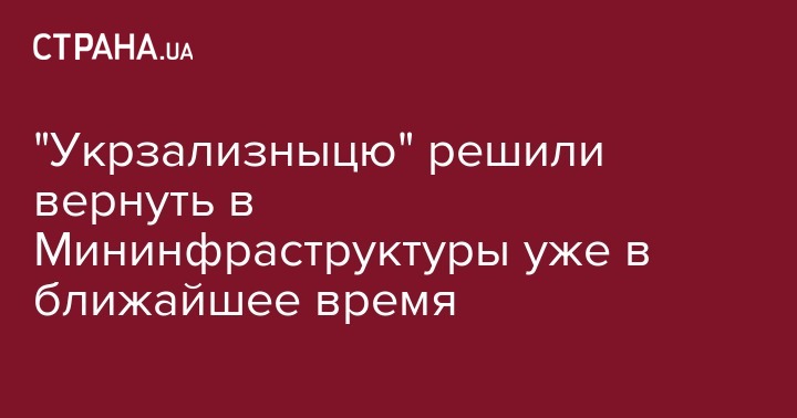"Укрзализныцю" решили вернуть в Мининфраструктуры уже в ближайшее время