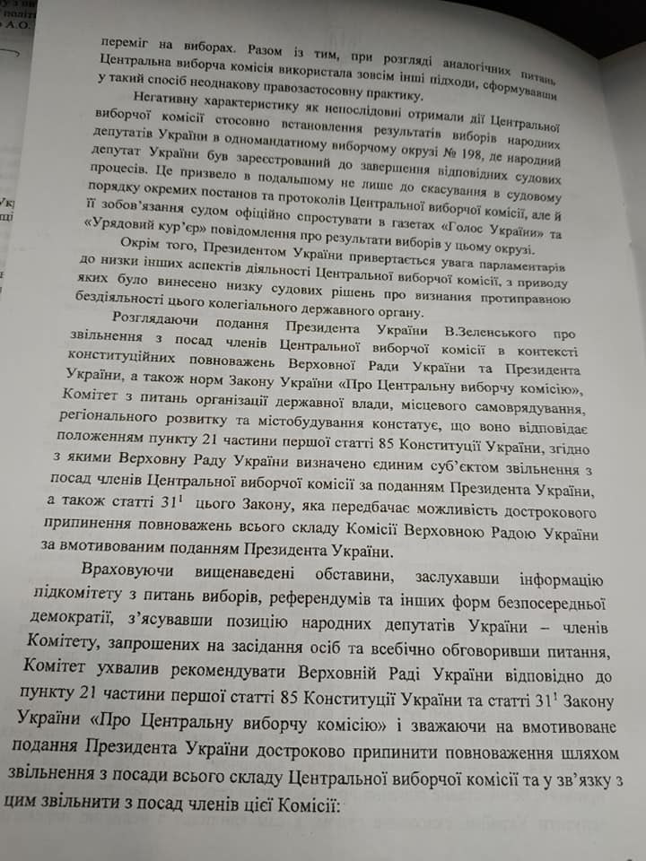 Ранее в Зе-команде допускали, что в парламенте могут рассмотреть представление президента на увольнение всех членов ЦИК именно в четверг, 12 сентября.
