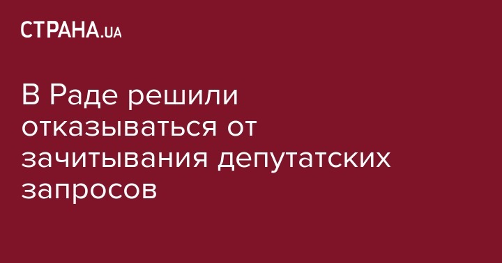 В Верховной Раде намерены законодательно обязать публиковать список запросов народных депутатов в органы власти, организации и предприятия на сайте парламента, вместо текущей практики зачитывания их председательствующим на пленарных заседаниях в сессионном зале.