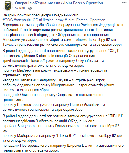 Скриншот: Facebook/ Операція об'єднаних сил / Joint Forces Operation