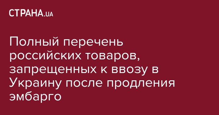 Итак, вот полный перечень российских товаров, которые запрещено ввозить в Украину: