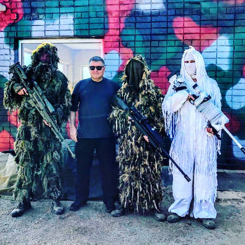 "Пока в Киеве кипят политические страсти - мы тут на полигоне Нацгвардии Старе проводим учения ГСЧС, полиции, пограничников и нацгвардии. Снайперы - одни из лучших! И только я один не замаскирован. Снайперская мода трёх сезонов - лето, весна/осень, зима", - подписал он снимок.