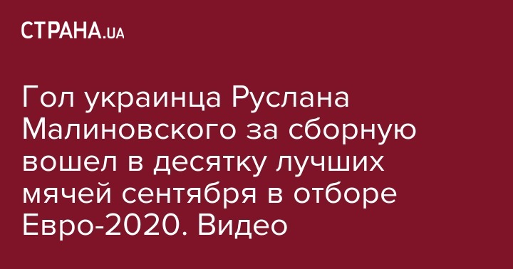 Гол полузащитника сборной Украины Руслана Малиновского вошел в подборку лучших мячей по итогам поединков квалификации чемпионата Европы-2020, которые прошли в сентябре. Об этом сообщил официальный Twitter-аккаунт UEFA EURO 2020.