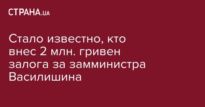 По информации канала, залог внесла дочь Василишина. Кроме того, в данное время в Днепровском районном суде города Киева проходит заседание, в ходе которого защита подозреваемого во взяточничестве и отстраненного от должности чиновника отстранение его от выполнения обязанностей.