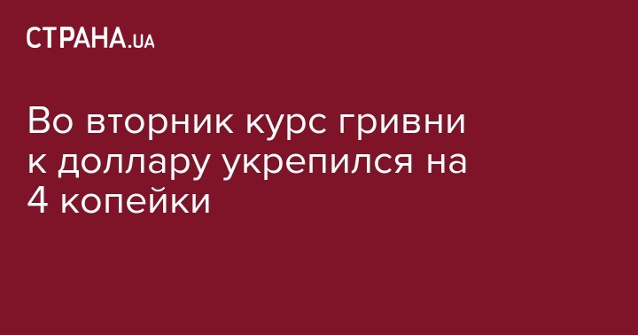 Во вторник курс гривни к доллару укрепился на 4 копейки