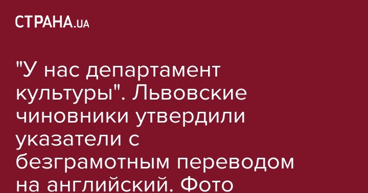 В Департаменте культуры, национальностей и религий Львовской ОГА согласовали установку более 50 туристических указателей в области с неправильным переводом на английский, на изготовление которых были потрачены около 600 тысяч гривен, передает "Zaxid".
