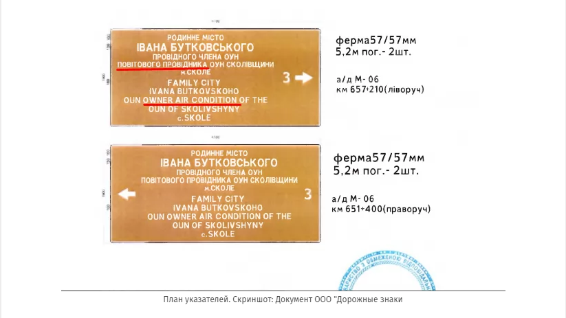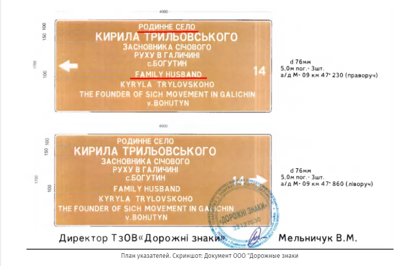 В тендерной документации департамента культуры ЛОГА для участников тендера действительно указывались только украиноязычные версии надписей. Заместитель директора ООО "Дорожные знаки" Игорь Прокоса подтвердил, что переводом занимались работники фирмы.