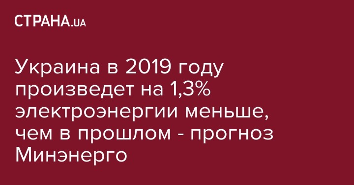 Украина в 2019 году произведет на 1,3% электроэнергии меньше, чем в прошлом - прогноз Минэнерго