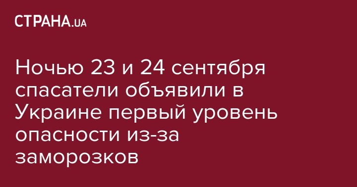 Ночью 23 и 24 сентября спасатели объявили в Украине первый уровень опасности из-за заморозков