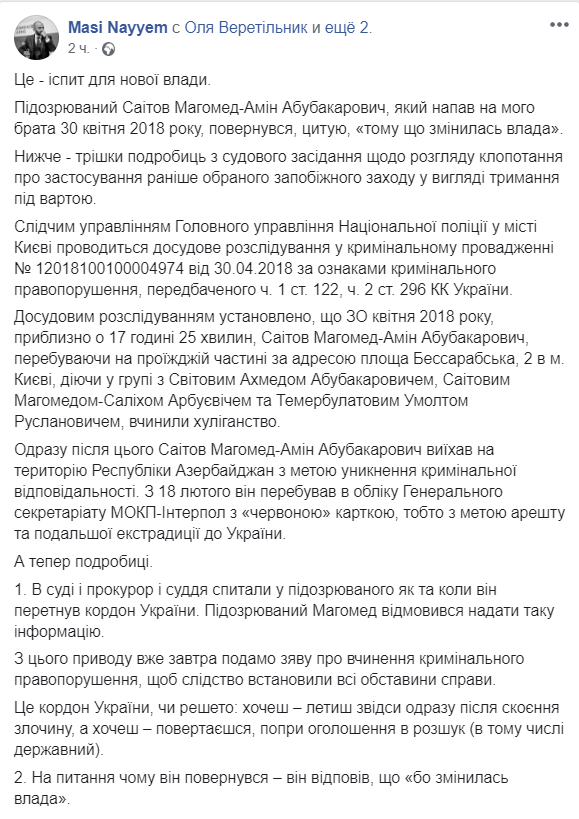 Скриншот: Facebook/Masi Nayyem