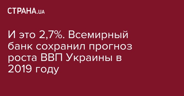 Всемирный банк сохранил прогноз роста ВВП Украины на уровне 2,7% в 2019 году. Об этом сообщают "Украинские новости" со ссылкой на Global economic prospects.
