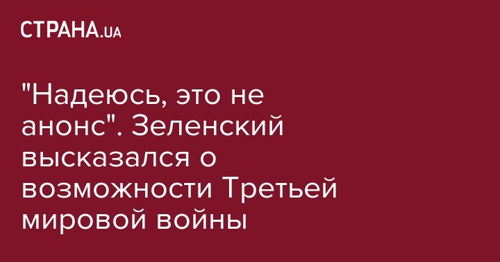 "Надеюсь, это не анонс". Зеленский высказался о возможности Третьей мировой войны