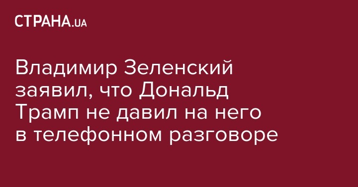 Владимир Зеленский заявил, что Дональд Трамп не давил на него в телефонном разговоре